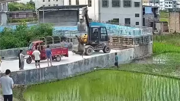 男子遭疯牛追击跳田逃生,后续:牛死亡后被挖掘机吊出