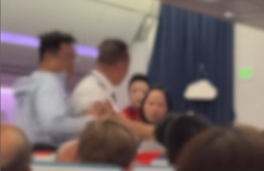 据拍摄视频显示,航班上两名旅客发生口角,其中一名女性乘客情绪激动直接将手中打开的矿泉水瓶,浇向邻座乘客头部。