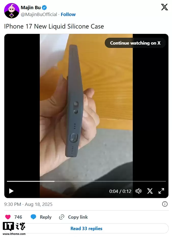 若视频中这款保护壳确为苹果出品,那么先前关于iPhone 17系列将新增第二枚相机控制按键的传闻可能便不成立。从现有外观来看,尚无法确认该保护壳是否来自苹果、Beats或其他品牌,其“液态硅胶”的命名是否为官方定名也有待证实。不过谜底即将揭晓——按惯例苹果预计将在一个月后正式发布iPhone 17系列新品。