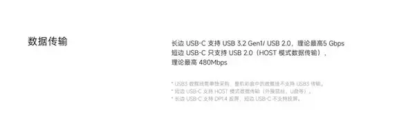 就以刚发布的RedmiK Pad平板为例,机身两个Type-C接口只有长边支持USB 3.2 Gen1,短边只支持USB 2.0。简单来讲用K Pad传输数据,长边速度要比短边快得多。