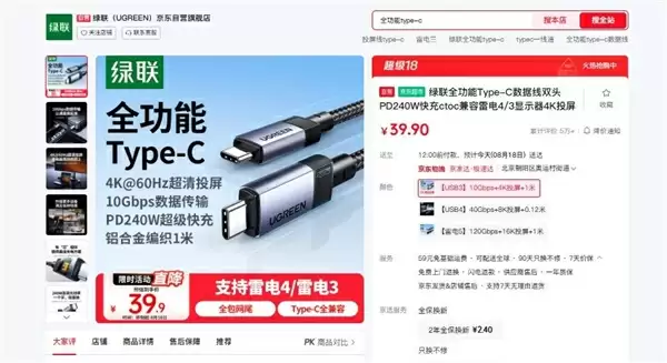 对于一般用户而言,选择Type-C线缆时,不能再只看“是不是Type-C”,而必须关注其支持的协议、传输速率、最大充电功率等关键参数,一根全功能的Type-C线,价格自然不菲。