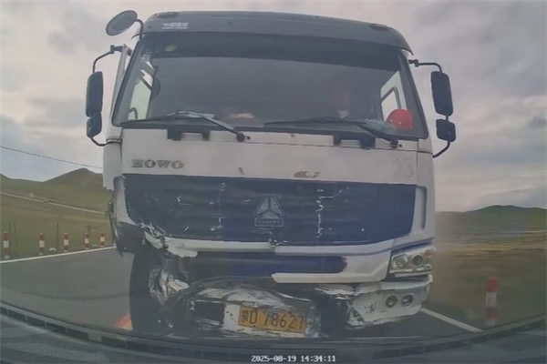行车记录仪拍摄的画面显示,此事发生在今日下午2点34分,目测是在内蒙古一条公路上。
