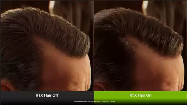 从对比图可以看出,开启RTX Hair后,人物头发的细节、光影和质感都有了质的飞跃。