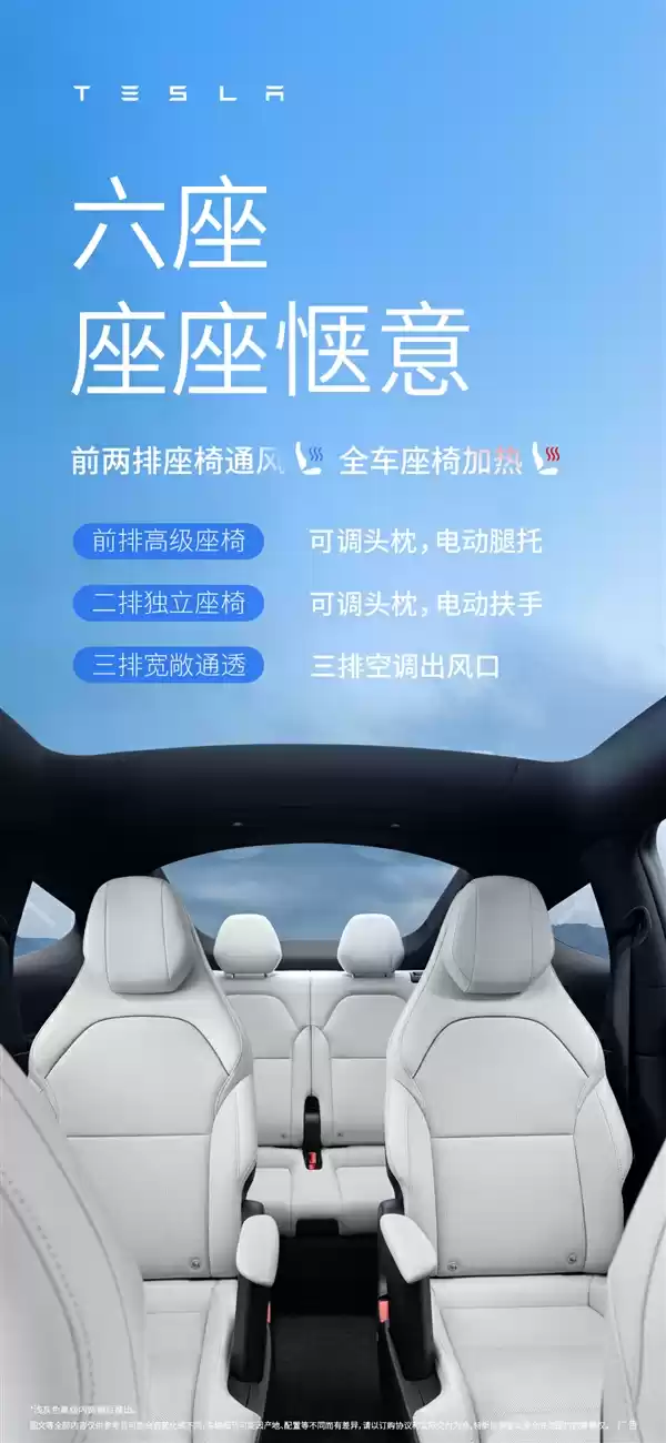 特斯拉Model Y L六座版上市:33.9万起,座椅/空间/音响全面升级