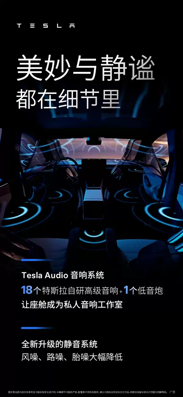 音响系统迎来重大升级,搭载18个特斯拉自主研发的高保真扬声器,配合专业级低音炮单元。全新的NVH静音工程大幅降低了行驶过程中的各类噪声干扰。