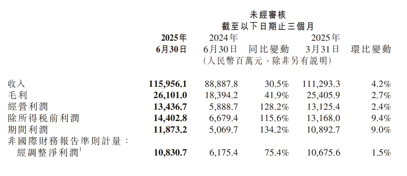 小米集团(HK01810)8月19日公布的2025年第二季度财报显示,公司实现营收1160亿元,同比提升30.5%;经调整净利润108亿元,同比激增75.4%,双双刷新历史记录。值得关注的是,这已是小米连续三个季度营收突破千亿大关,且连续两个季度净利润保持在百亿以上。