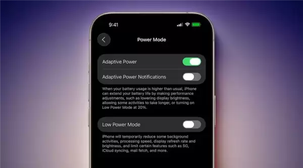 iOS 26还为iPhone新增了自适应电源模式,与现有的低电量模式并存。据苹果介绍,该模式能在需要时通过"性能调整"来延长电池续航,包括适度调低屏幕亮度、允许部分操作延长完成时间,并在电量剩余20%时自动开启低电量模式。