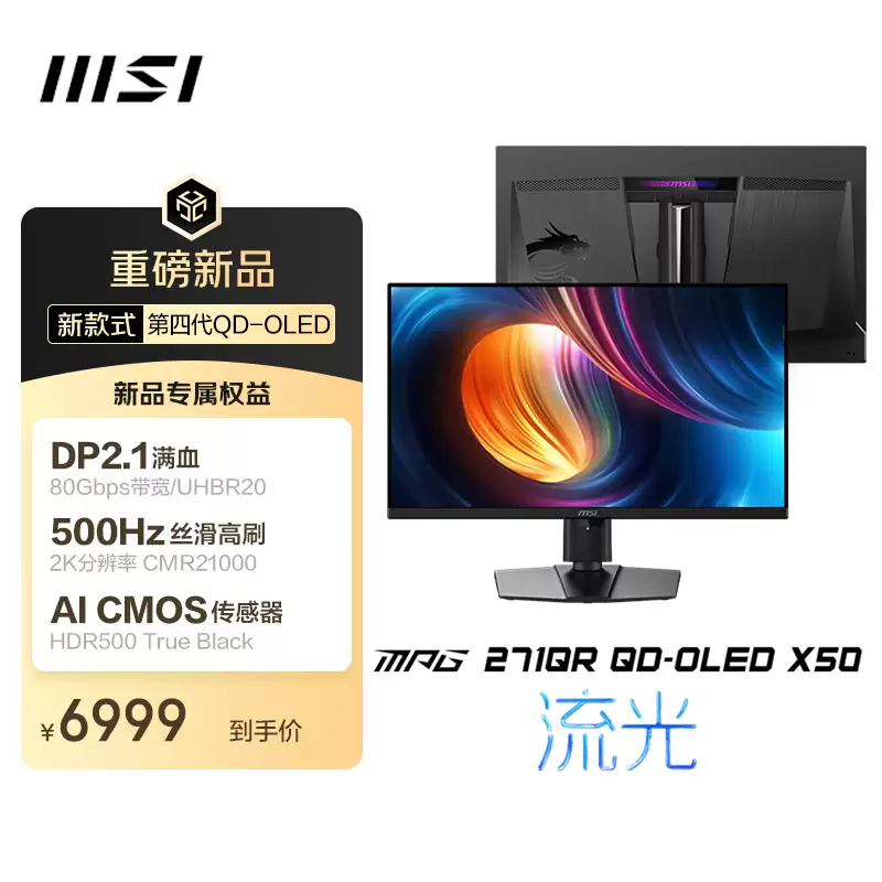 京东微星 MPG 271QR QD-OLED X50 显示器 8 月 26 日 00:00 开售 6999 元直达链接相关攻略