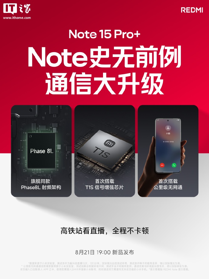 据此前报道,REDMI Note 15 Pro 系列手机已定档 8 月 21 日 19:00,具备“真抗摔”及“真防水”属性,并在屏幕、续航、通信诸多方面实现“旗舰体验”。