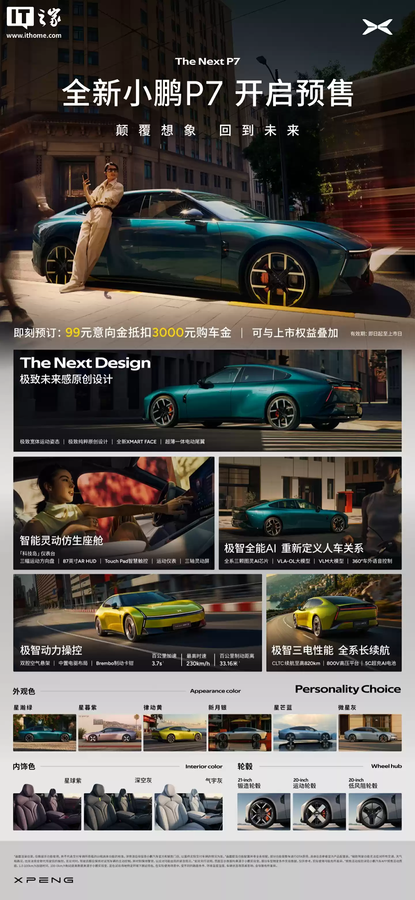 全新小鹏P7提供三种续航版本:820km超长续航版、750km高性能版和702km长续航版。全系标配800V高压平台和5C超充电池,百公里加速最快仅需3.7秒。不过目前官方尚未公布具体预售价格。