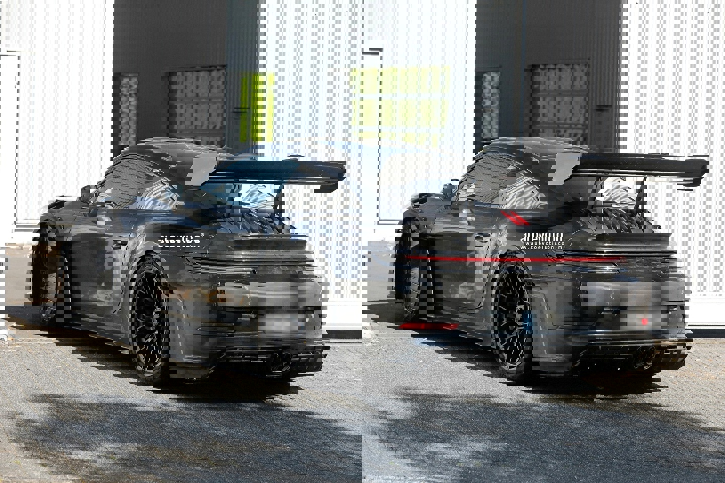 该媒体最新分享了一组最新抓拍的路测图,展示了近乎无伪装下的 2026 款保时捷 911 GT3 RS,展示了新设计的后保险杠和空气动力学扩散器(安装在车底或尾部,通过优化气流,提升车辆高速稳定性)。