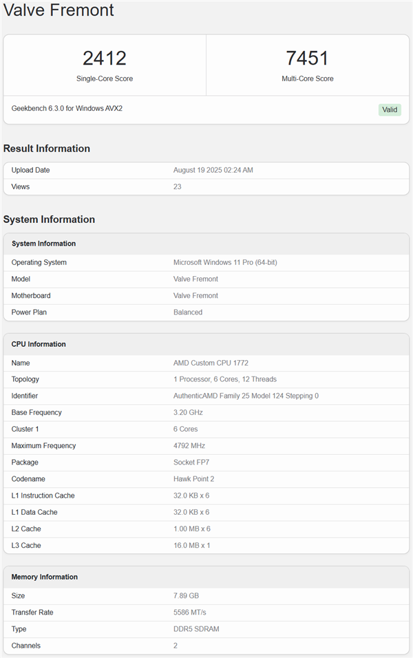AMD六核CPU+RX 7600 GPU!Valve新游戏主机跑分曝光