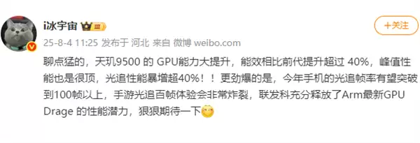 8月20日最新消息,知名数码博主爆料称联发科新一代旗舰芯片天玑9500将搭载全新NPU架构,其AI计算能力相较上一代产品实现了惊人的100%性能提升。