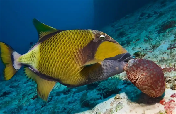 冲绳海域惊现“泰坦炮弹鱼”,面目狰狞引关注
