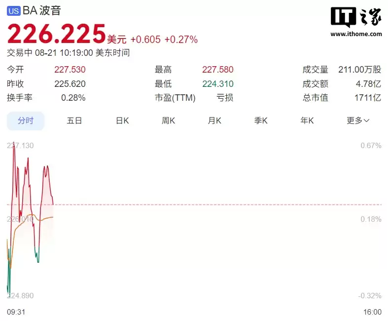 消息发布后,波音股价开盘前涨超 2%。截至发文,波音盘中股价涨 0.27%。