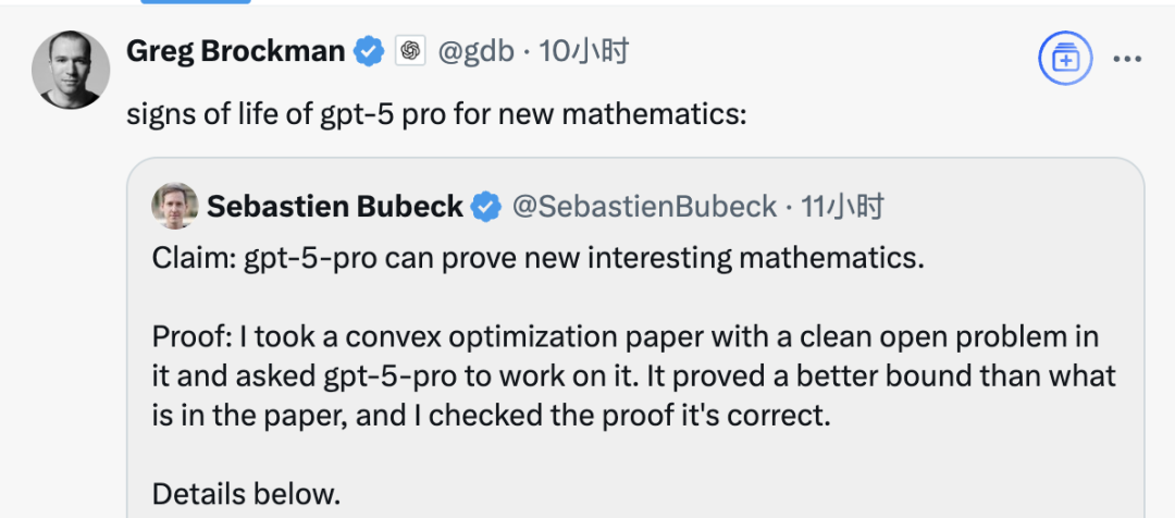 GPT-5 Pro实现数学研究突破:独立解读论文并优化边界,OpenAI总裁称其展现“生命迹象”
