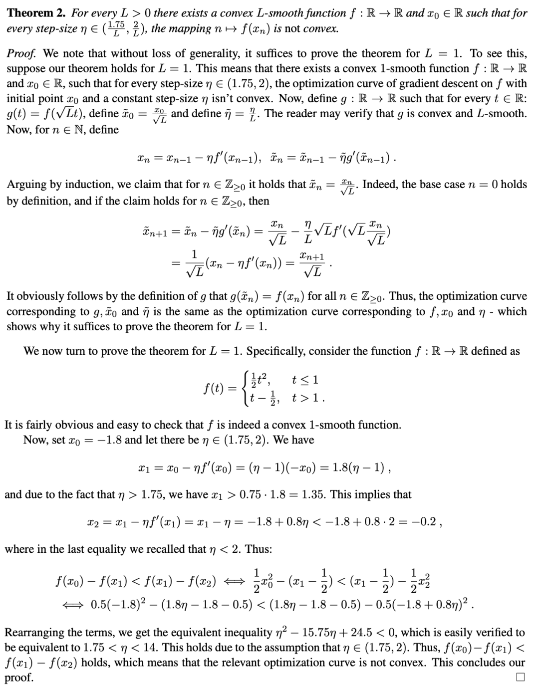 非凸可能区间:当步长 η ∈ (1.75 / L, 2 / L) 时,即使梯度下降仍单调收敛,优化曲线可能不是凸的;