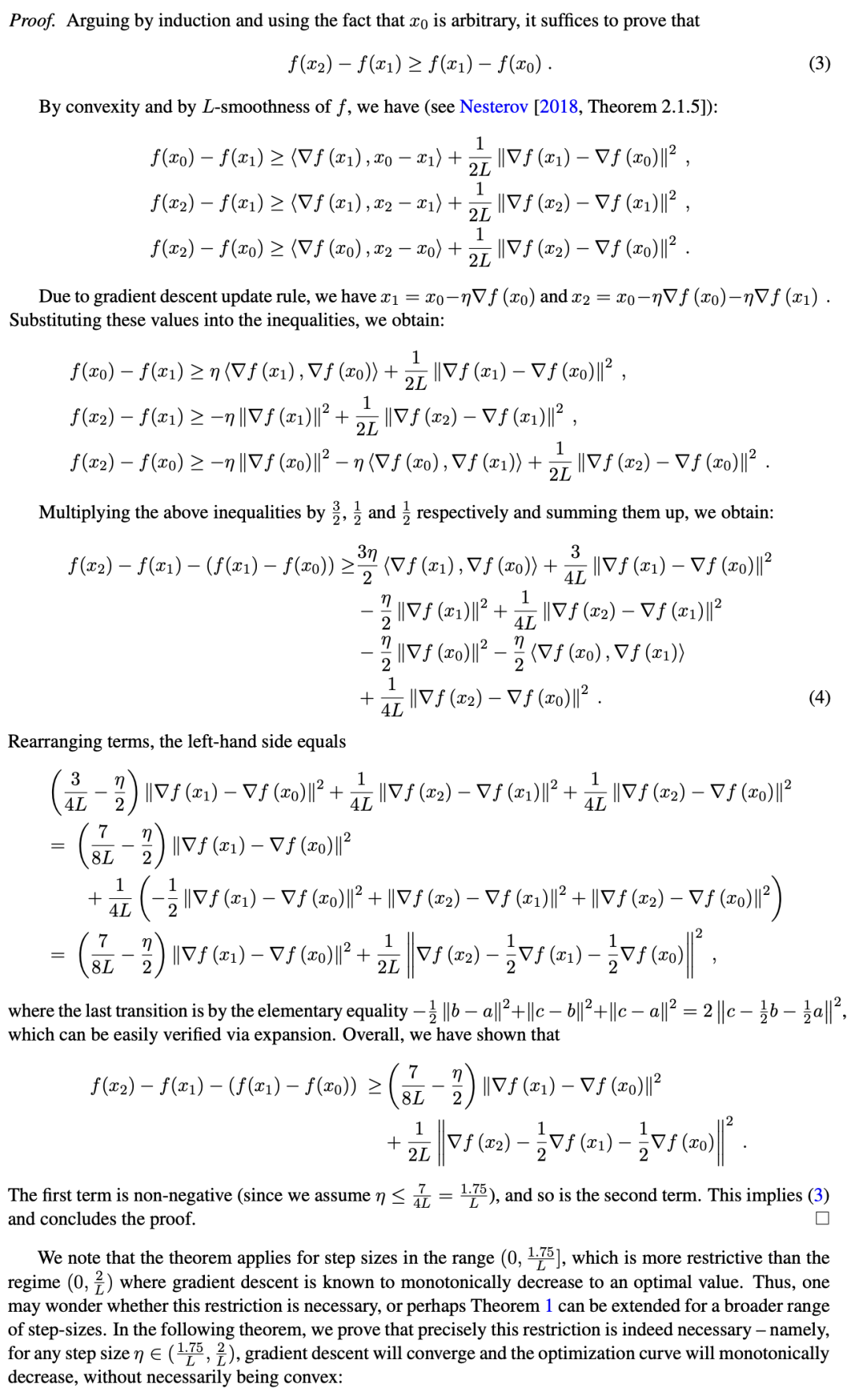 在论文的第一版中,作者分别证明了步长不大于 1 / L 和大于 1.75 / L 时的情况,但在 (1 / L, 1.75 / L] 范围内则未有定论。