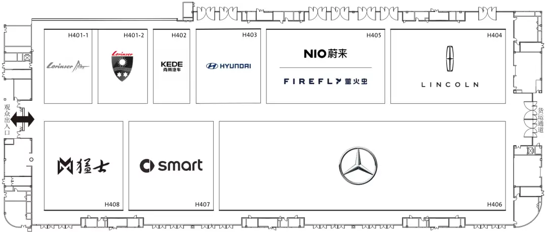 4 号馆:现代、蔚来(含萤火虫)、林肯、猛士、smart、梅赛德斯-奔驰