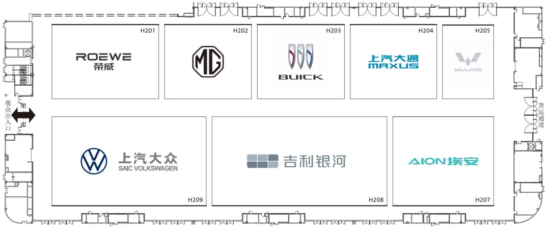 2 号馆、荣威、名爵、别克、上汽大通、上汽通用五菱、上汽大众、吉利银河、埃安
