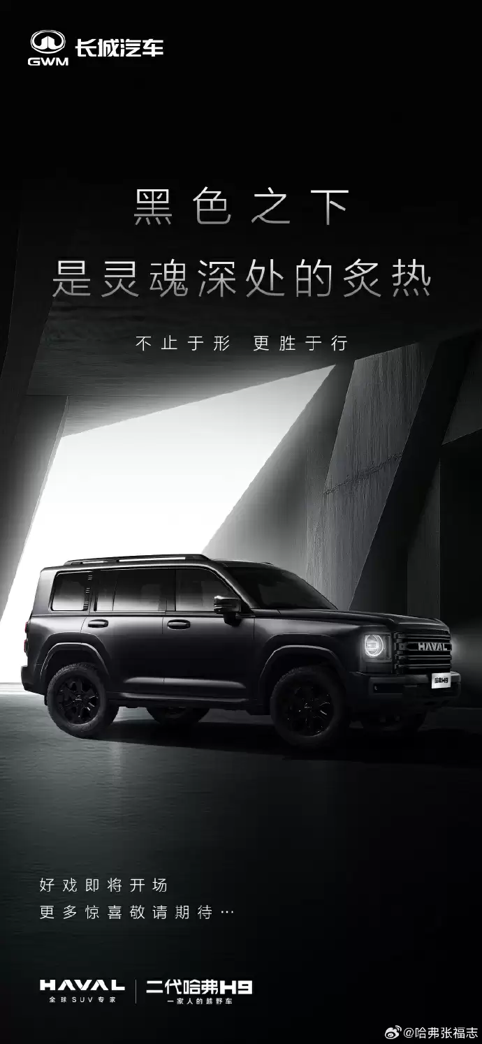 8月21日,长城哈弗品牌营销副总经理张福志通过社交媒体发布了新款二代哈弗H9的预告图,并在推文中透露近期哈弗品牌还将推出更多值得关注的车型,引发车友们持续期待。这也预示着这款新车或将在不久后正式上市。