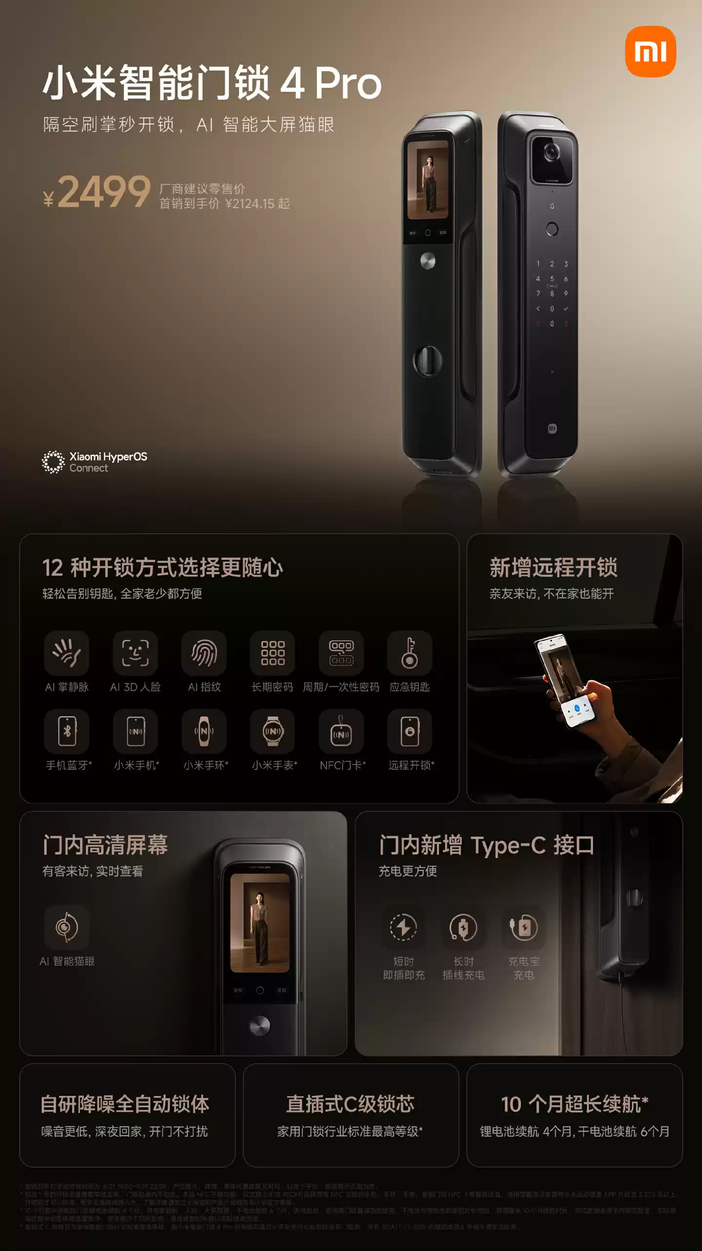 小米智能门锁4 Pro正式开售:AI掌静脉+3D人脸识别,首发价2499元