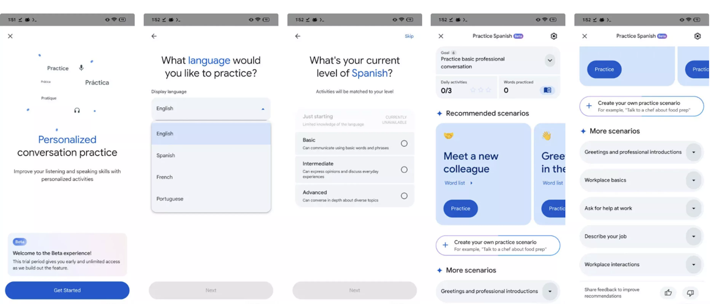 目前“练习”功能处于试用期,界面提示未来或将引入付费方案,可能与谷歌 Gemini 等 AI 订阅服务整合。该媒体认为谷歌翻译转向 AI 驱动的语言学习,将直接挑战以 Duolingo、Babbel 为代表的在线教育平台。