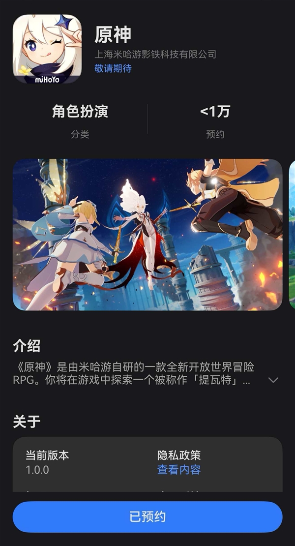 《原神》鸿蒙版开放预约:华为游戏中心首发开放世界顶级IP
