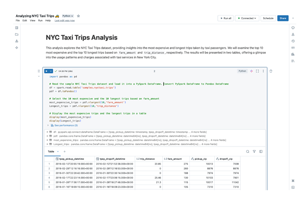 Databricks提出“数据湖仓”(Lakehouse)的概念,打通数据存储、查询、分析的整套流程,近年来还引入可视化工具和生成式AI功能。
