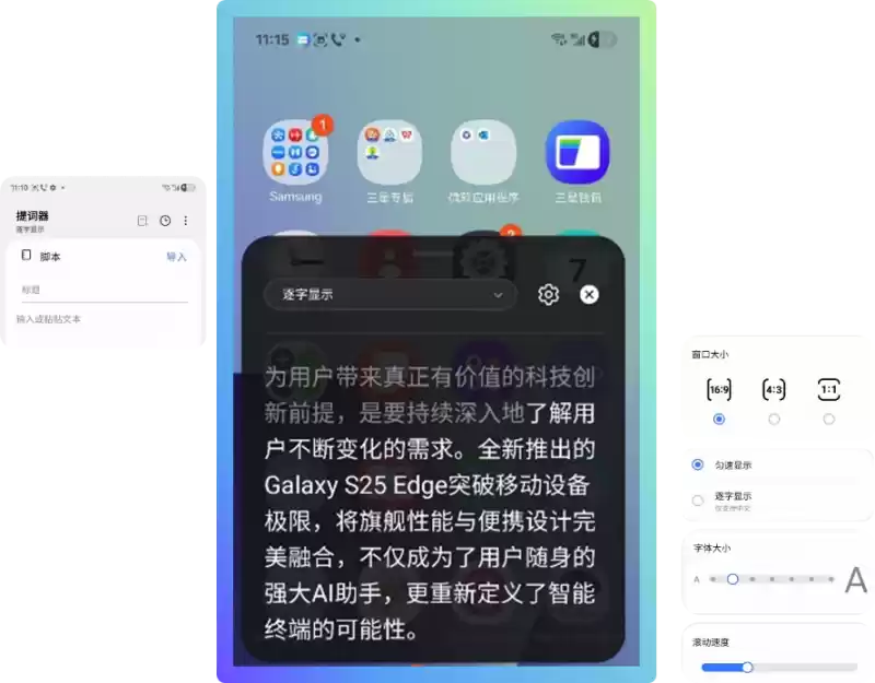 演讲助手6的提词器功能可以在演讲、发言、录制讲解视频时为用户提词,除了匀速显示外还支持更加智能的逐字显示,让用户表现更自然流畅。