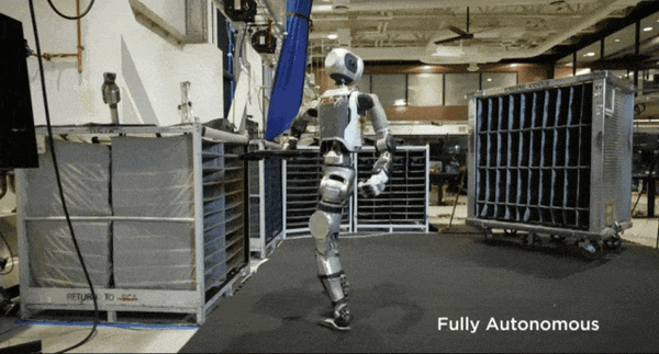 过了两个月,它就可以进厂打工了,只需告诉Atlas前后搬运的位置坐标,它就能全自动分装物件。