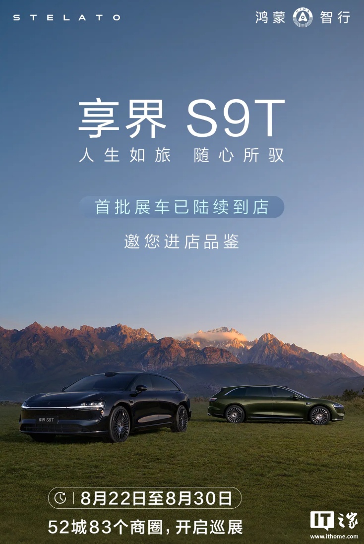 8 月 22 日消息,鸿蒙智行智界汽车官方今日宣布,享界 S9T 首批展车已陆续进店,今日起至 8 月 30 日将在 52 城 83 个商圈开启巡展。