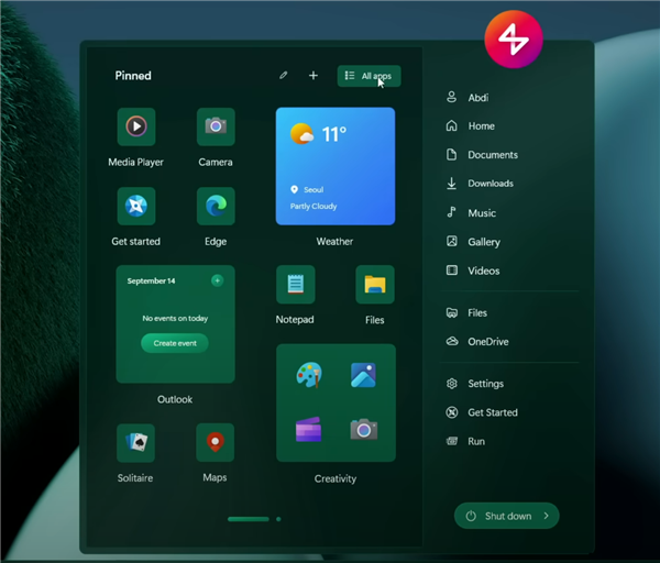 Windows 12.2概念设计曝光:全新开始菜单,支持Windows 7主题