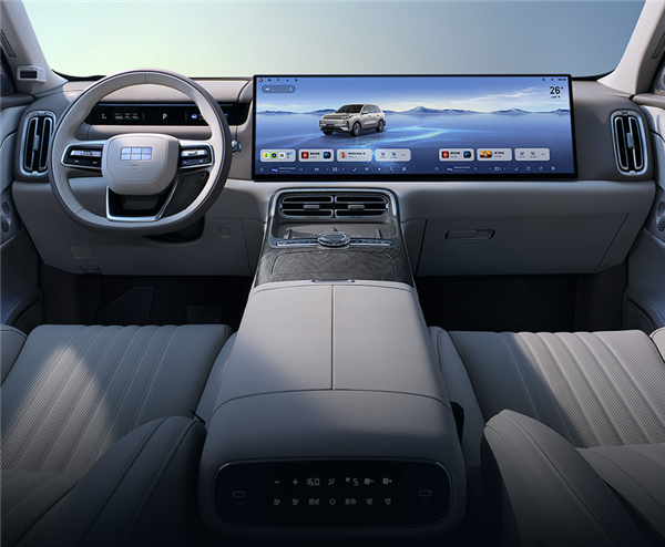 车内配备全液晶仪表盘、一体式大尺寸中控屏和副驾驶娱乐屏,二排还带有一个17.3寸3K吸顶屏,并搭载全场景AI Agent智能体,行业首发“端到端AI语音大模型”。