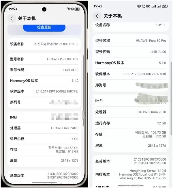 目前华为在售的Pura 80系列旗舰搭载的便是麒麟9020芯片,当系统更新到5.1.0.217版本后,“关于手机”界面就会显示芯片型号。