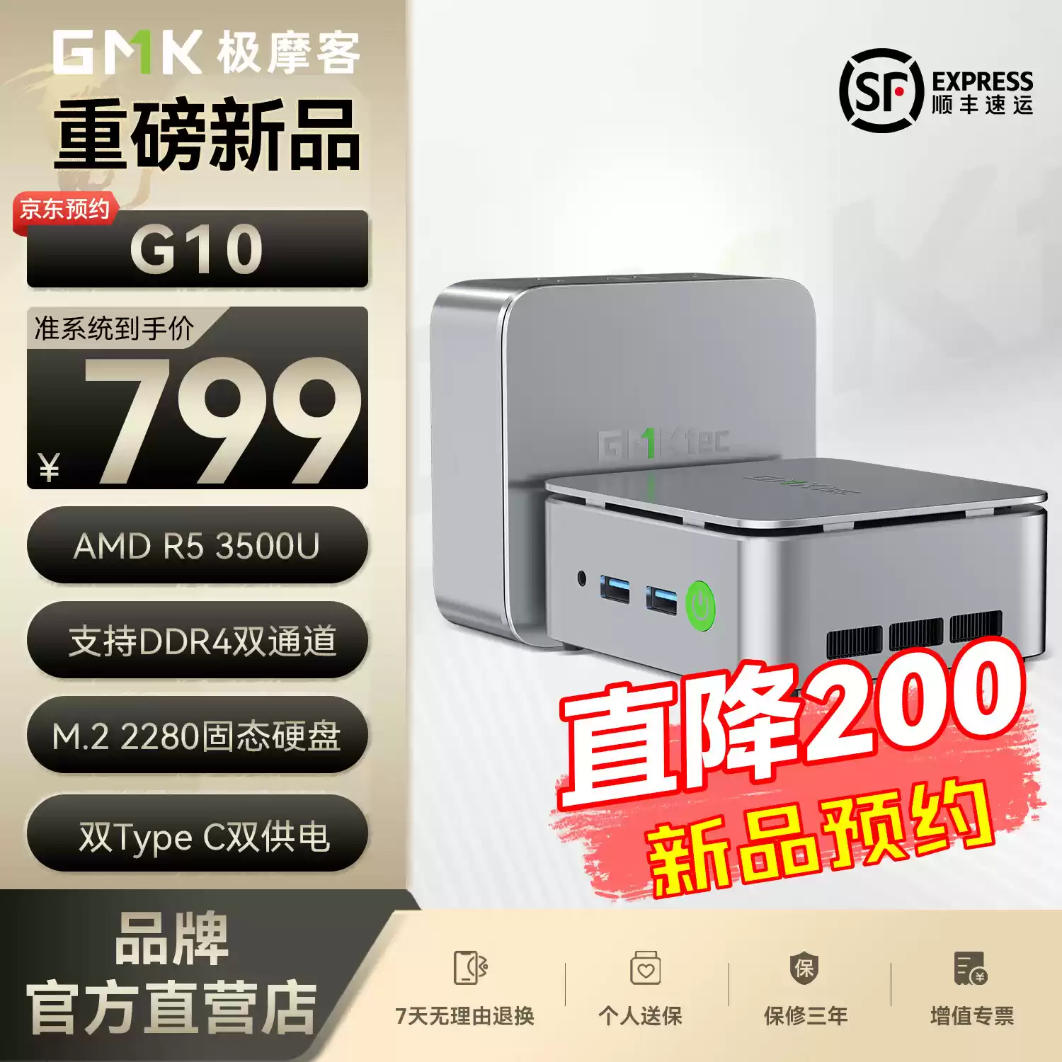 极摩客锐龙 5 3500U 迷你主机 G10 新增准系统版上架,799 元