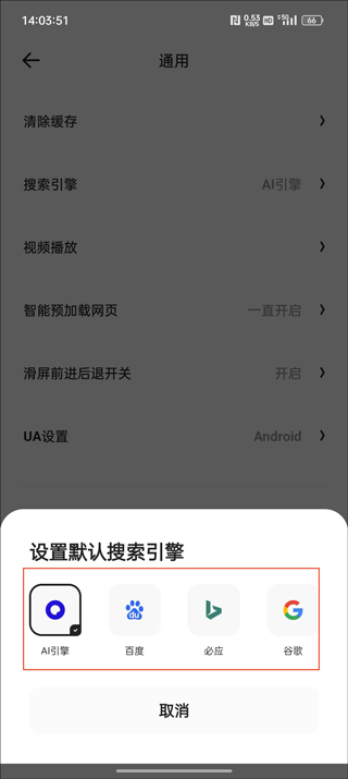 4、进入通用设置后咱们会发现搜索引擎选择它