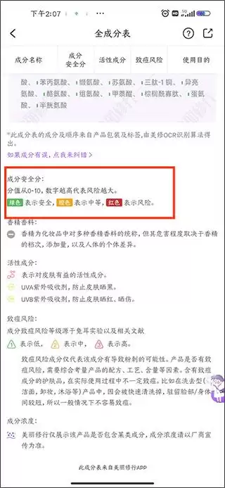 6、页面还会显示成分安全风险评估等详细信息