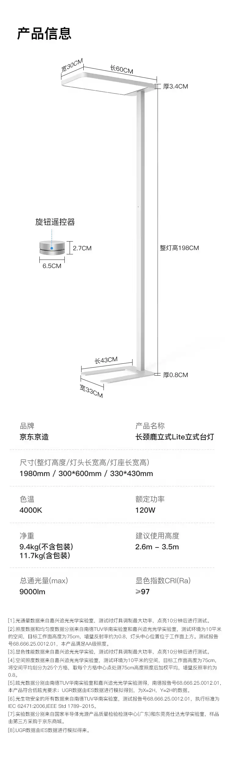 京东京造长颈鹿 Lite 2 大路灯首发779元:支持米家+小爱控制,保价1年