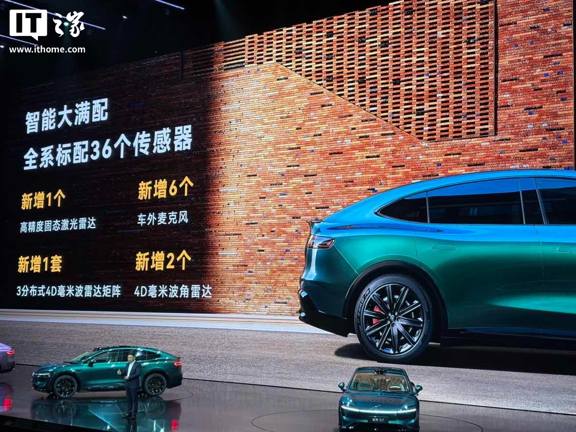 目前,智界及问界秋季新品发布会正在进行中,首先亮相的是新款智界 R7。据早些时候报道,新车“智能大满配”,全系标配 36 个传感器,全系标配 192 线激光雷达 + 后向高精度固态激光雷达(同级唯一)+ 3 分布式 4D 毫米波雷达矩阵(同级唯一),搭载 HUAWEI ADS 4 辅助驾驶系统。