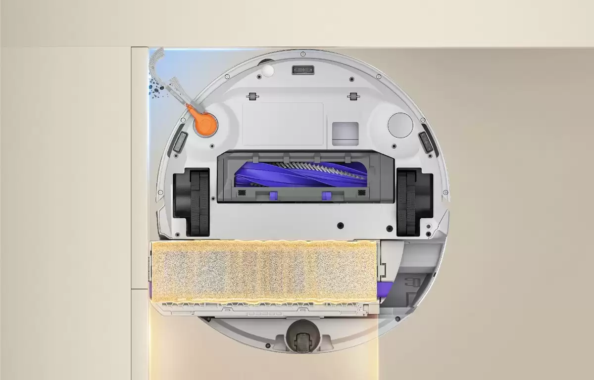 云鲸J6升级双重外扩系统,在清洁边角区域时,履带拖布无极外扩并保持12N恒定下压力,边刷反转可延长有效清洁半径至80mm,快速收拢边角脏污,全面覆盖墙角、家具桌腿等卫生死角。