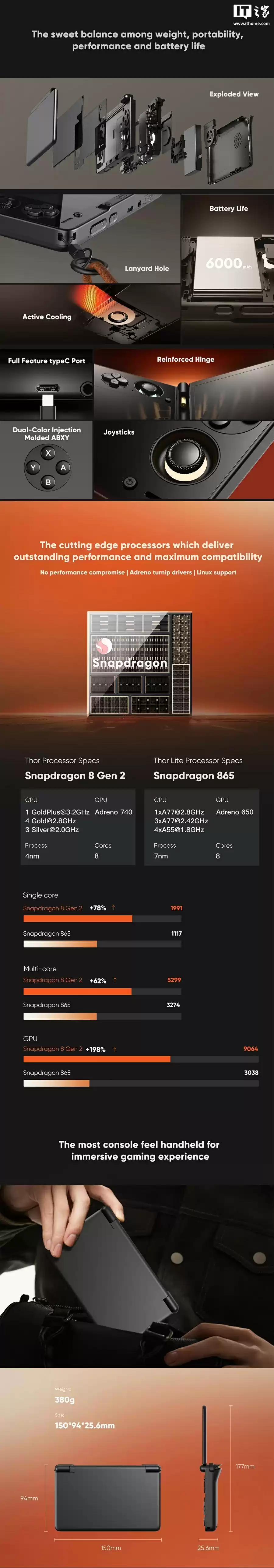AYN Thor 双屏掌机配置揭晓:骁龙 865/8 Gen 2 芯片,最高 16GB 内存