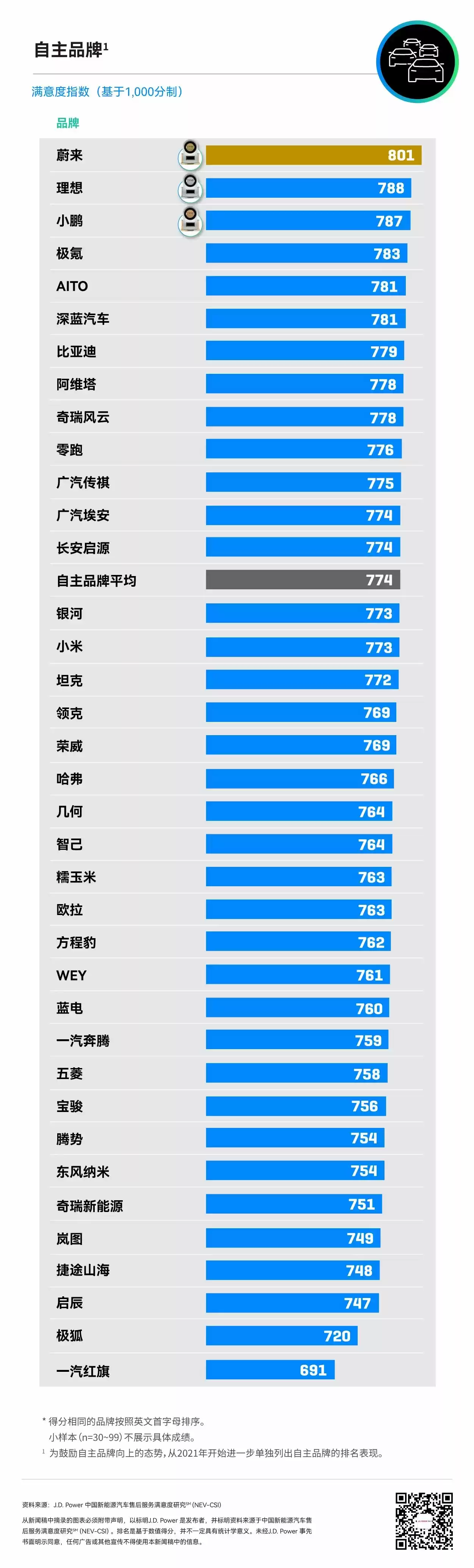 全球权威市场研究机构 J.D.Power 日前正式发布《2025 年中国新能源汽车售后服务满意度研究报告(NEV-CSI)》,蔚来以 801 分(1,000 分制)的优异成绩,斩获豪华品牌新能源汽车售后服务满意度第一名,奔驰以 783 分位列第二。与此同时,蔚来也斩获中国新能源汽车售后服务满意度第一,理想以 788 分位列第二。
