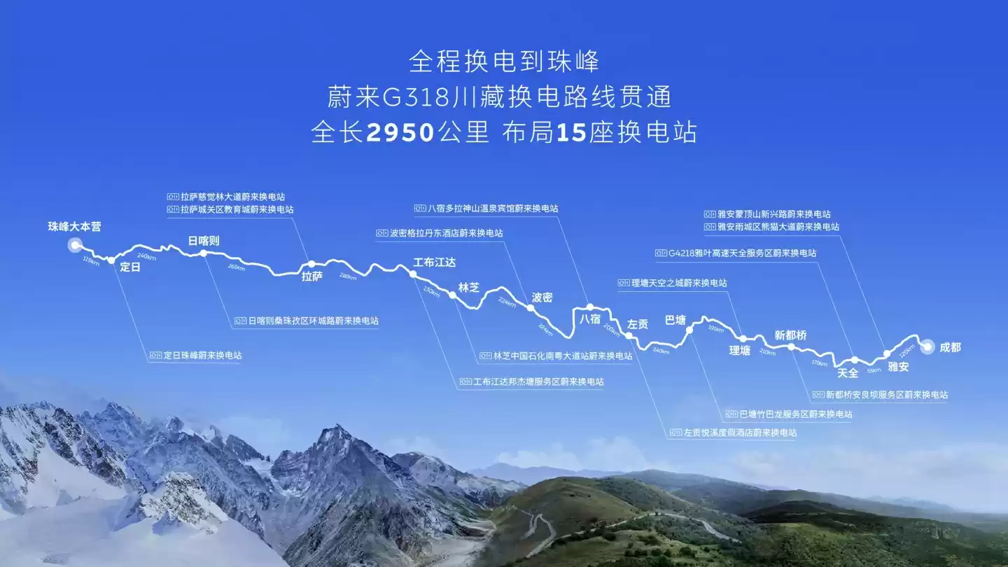 J.D.Power 在报告指出“补能已从‘基建竞赛’进入‘体验战争’”,而蔚来早已通过实际行动验证这一趋势 ——2025 年 8 月,蔚来完成“G318 川藏换电线路的贯通,让用户全程换电到珠峰”的服务升级。此次升级后,用户从全国出发,沿超 1000 座高速换电站,以及 G318 国道前往珠峰,全程可实现“换电无焦虑”。