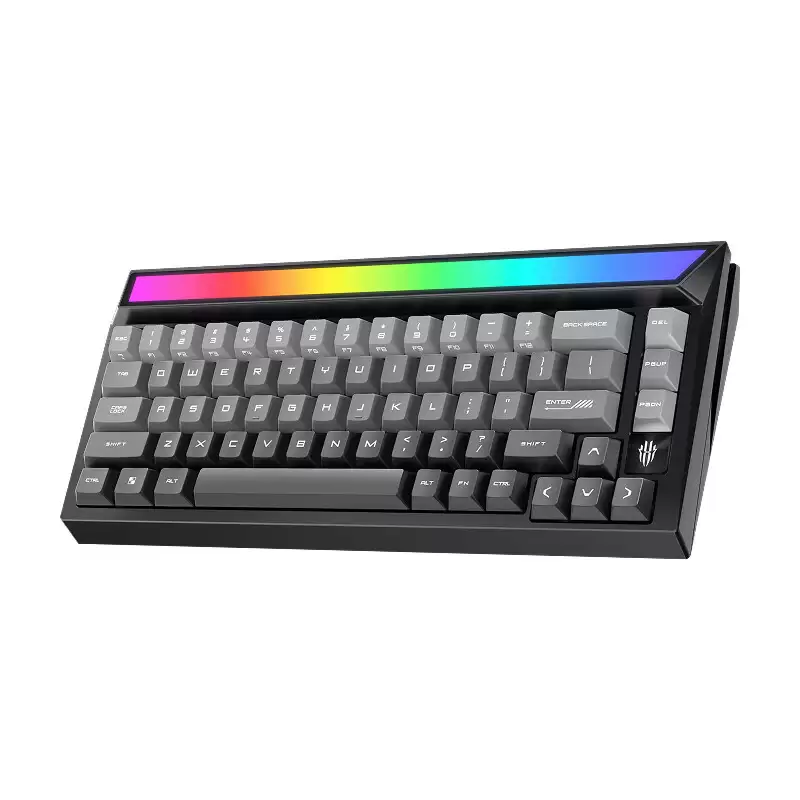 该款键盘拥有客制化模块,支持随心 DIY,号称“个性 DIY 按键,一键秒变 68 配列”。键盘还采用内胆双结构设计,拥有电竞级 Gasket+Buttom 可切换结构(铝合金定位板 + PCB 夹心棉 + 轴下垫 + 结构硅胶 + PCBA 电路板 + 消音填充棉 + EVA 底棉)。