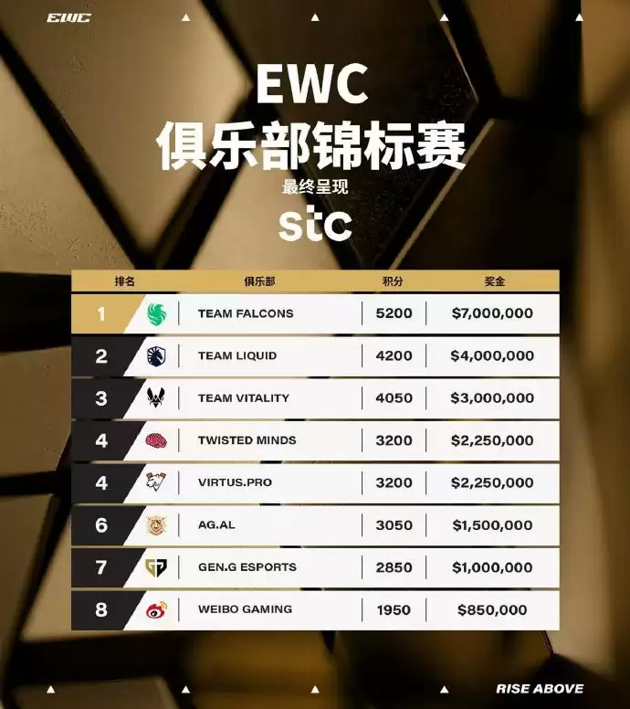 本届赛事中,Team Liquid战队展现出强劲实力,与冠军奖杯仅一步之遥,最终摘得亚军;Team Vitality战队则获得季军。特别值得骄傲的是,中国电竞力量在本次赛事中表现亮眼,AG.AL、WBG、KSG三支中国战队成功挺进俱乐部排行榜前十。