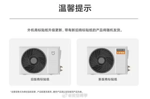 据小米官方透露,近期对空调外机的品牌标识进行了视觉升级,新旧版本的产品将并行销售。