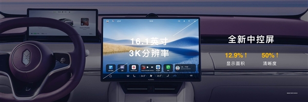 全新智界R7的中控屏也升级为了16.1英寸3K高分辨率屏幕,显示面积更大更清晰。