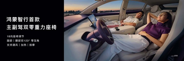 同时,新车还是鸿蒙智行首款配备主副驾双零重力座椅,拥有18项座椅调节,腰部和腿部双零压角,主驾副驾两个人都能在车里休息。