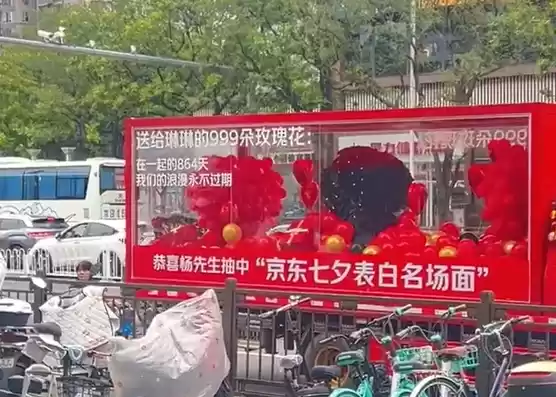 据了解,该小伙通过参与京东七夕表白名场面活动,成功解锁了由京东送出的999朵巨型玫瑰。
